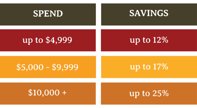 We offer up to 25% savings on corporate gift orders, based on quantity and customization.