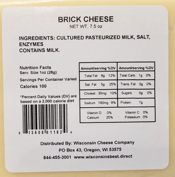 Enjoy the rich and slightly tangy flavor of our 7-ounce Brick Cheese. Known for its smooth and creamy texture, Brick Cheese has a distinctive mild flavor with just a hint of sharpness. The cheese’s taste is delicate yet satisfying, making it perfect for melting on burgers, adding to sandwiches, or enjoying with crackers. Its versatility and smooth, buttery profile make it a beloved choice for cheese lovers.
