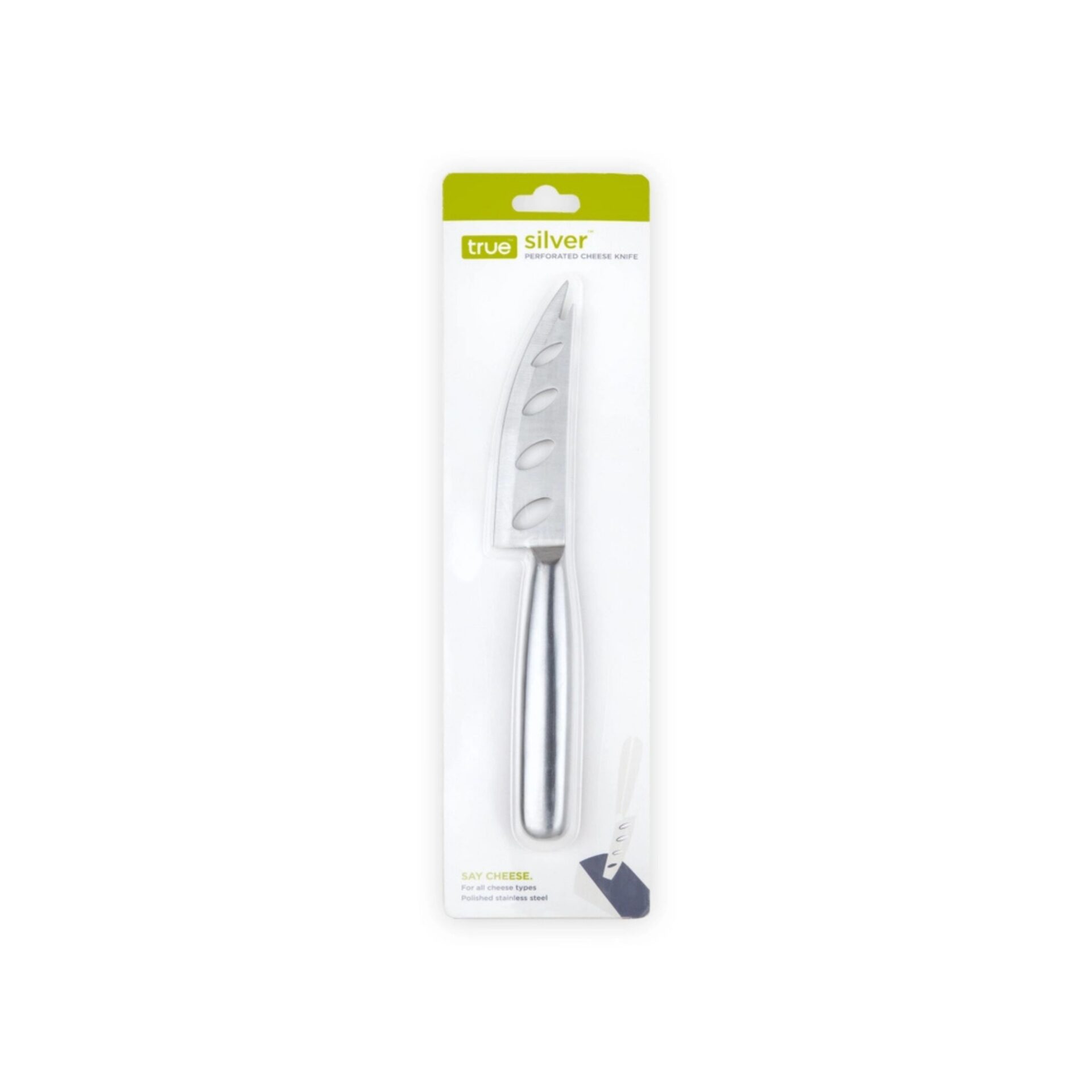 Elevate your cheese board with the sleek performance of our Silver Perforated Polished Stainless Steel Cheese Knife, thoughtfully designed for both beauty and functionality. Every element is crafted with efficacy in mind, from the four perforations in the blade that reduce sticking and allow soft cheeses to release cleanly, to the razor-sharp edge that creates smooth slices and delicate slivers of any size. The forked tip makes it easy to break apart crumbly hard cheeses and serve them effortlessly, adding convenience to any gathering. Made from polished stainless steel, this versatile knife offers durability, balance, and a modern, professional look that complements any charcuterie board. Measuring 1.9 x 3.2 x 22.9 cm (0.8 x 1.3 x 9 in), it is suitable for all cheese types and dishwasher safe for easy cleanup, making it an essential tool for everyday entertaining or special occasions.