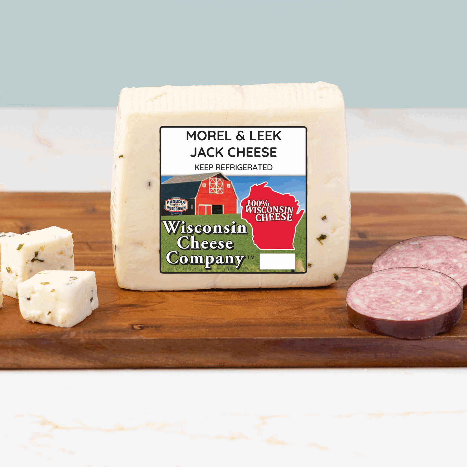 These 7-ounce blocks of Morel & Leek Jack Cheese offer a rich, earthy flavor with a smooth, creamy texture. The delicate, nutty taste of morel mushrooms pairs perfectly with the subtle sweetness of leeks, creating a well-balanced, savory cheese. The mild Monterey Jack base enhances the natural umami flavors, making this cheese an excellent choice for melting, snacking, or pairing with crackers and cured meats. A gourmet favorite for those who appreciate unique, woodsy flavors.